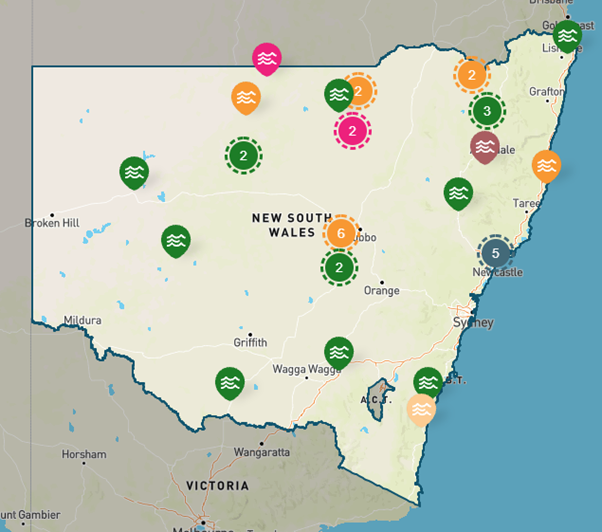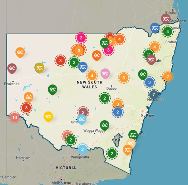 Currently, there are over 65 proposed future water projects across New South Wales as highlighted in the water project map, these projects include the SDLAM acceleration, reconnecting river country, dam and pipeline projects, Western Weirs program, Northern Basin toolkit measures and the Macquarie water security scheme.